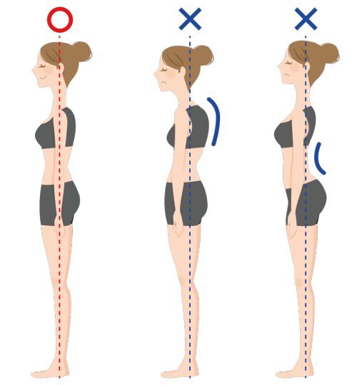 お腹が前に出たり、頭が前に出たりするといろんな箇所に負担がかかってきます。