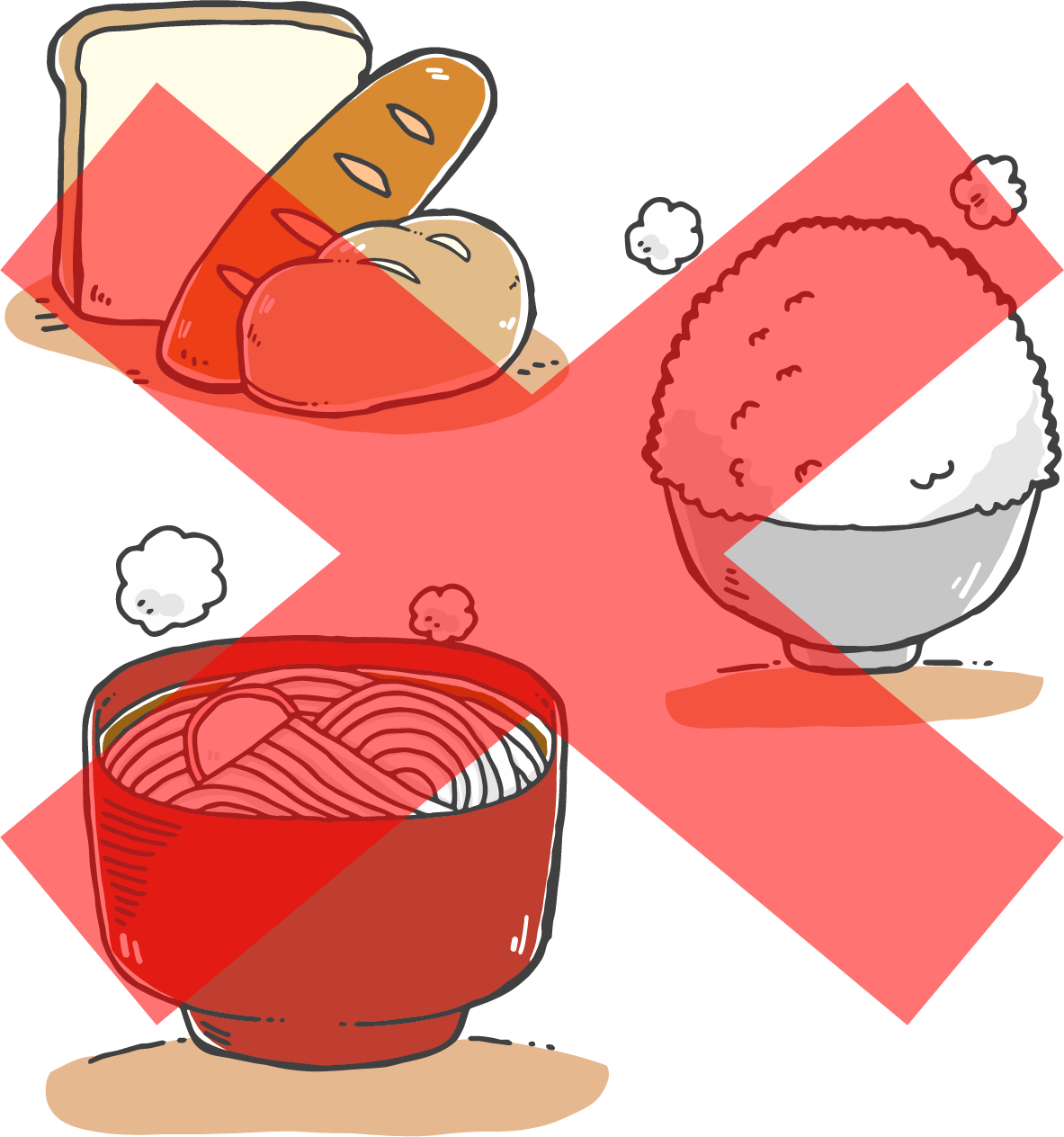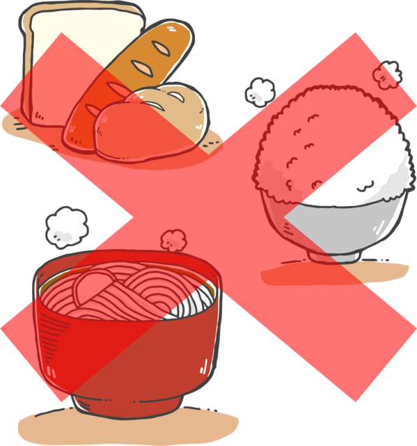 例)全粒粉のパスタ、玄米、たまねぎ、鶏肉・・・