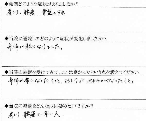 肩こりと腰痛で来院されました。