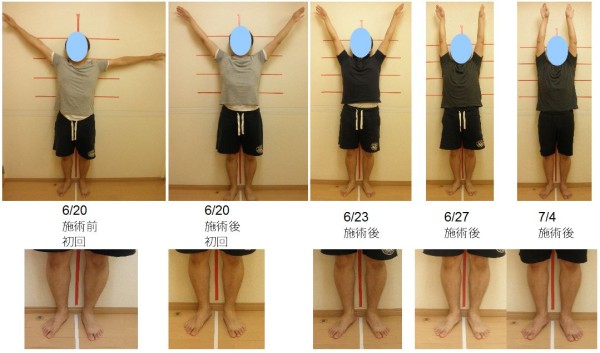 ですので施術前と後で検査を行い、体の可動域が変わったり
