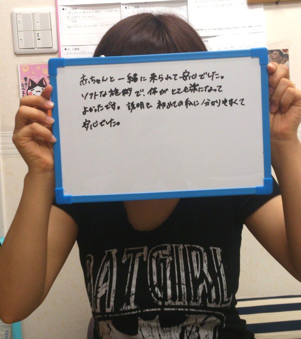 HOME > 大野城市、春日市 産後骨盤矯正情報 > 大野城市 産後骨盤矯正:赤ちゃんと一緒に来られて安心でした