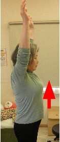 4)軽く伸ばしたまま、手(腕)を胸の高さまで上げ、一気に後ろへ振り下ろします