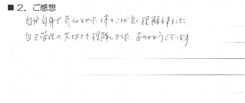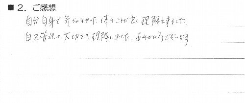自分自身で気づかなかった体のことが良く理解出来ました。