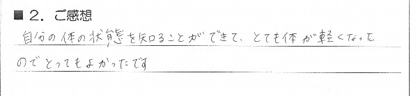 自分の体の状態を知ることができて、とても体が軽くなったので
