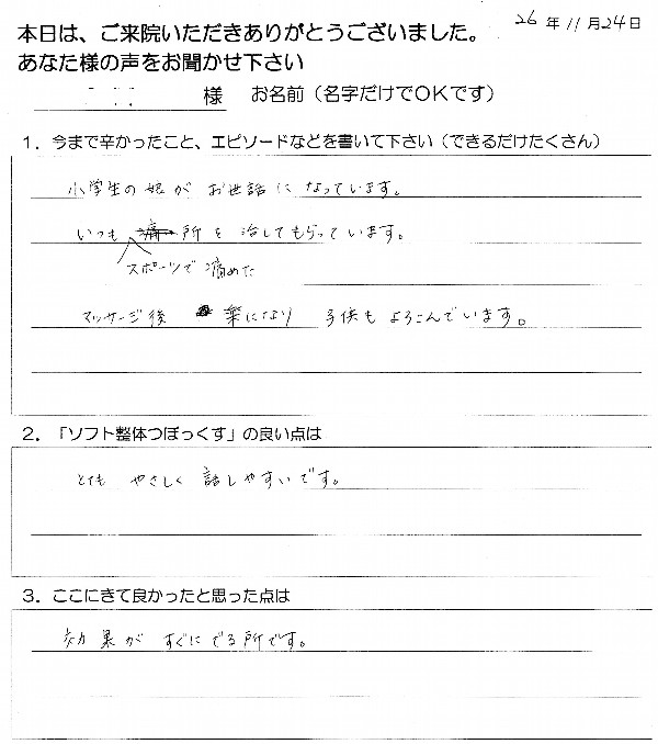 HOME > お客様の声 > 「小学生の娘がお世話になっています」