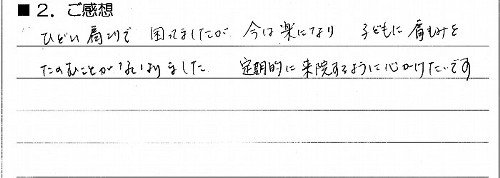 HOME > お客様の声 > 大野城市 肩こり[ひどい肩こりで困ってましたが、今は楽になり