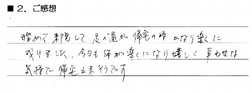 HOME > お客様の声 > 「足の痛みが帰宅の時かなり楽になりました」