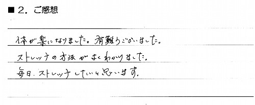 HOME > お客様の声 > 大野城市「ストレッチの方法がよくわかりました」