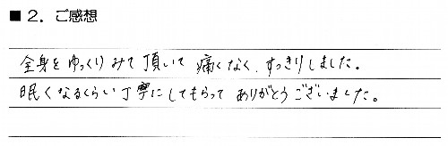 HOME > お客様の声 > 「眠くなるくらい丁寧にしてもらって」