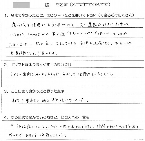 HOME > お客様の声 > 「神経痛がこんなにつらいと思いませんでした」